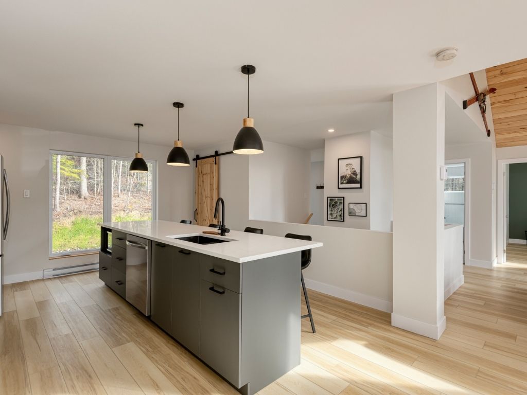 Un grand salon ouvert sur la forêt, un îlot central convivial et une salle à manger chaleureuse pour partager repas et rires.